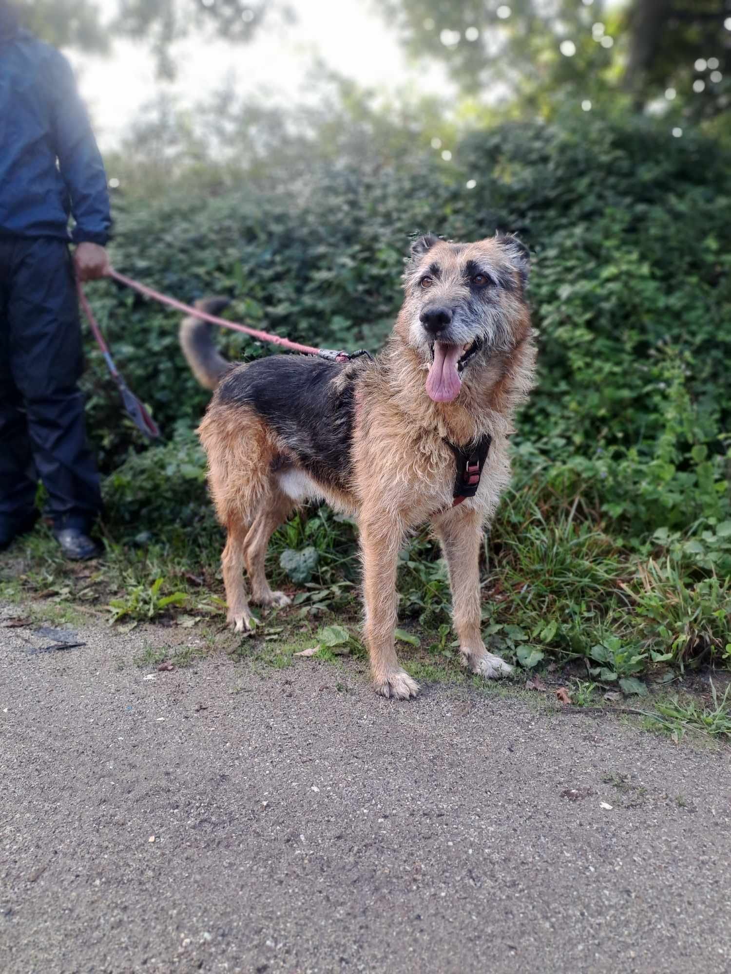 O Tede é um macho cruzado de pastor alemão. Ele é um cão gentil e amoroso que adora a atenção das pessoas. O Teste adora abraços. Ele é também social com outros cães (machos e fêmeas).